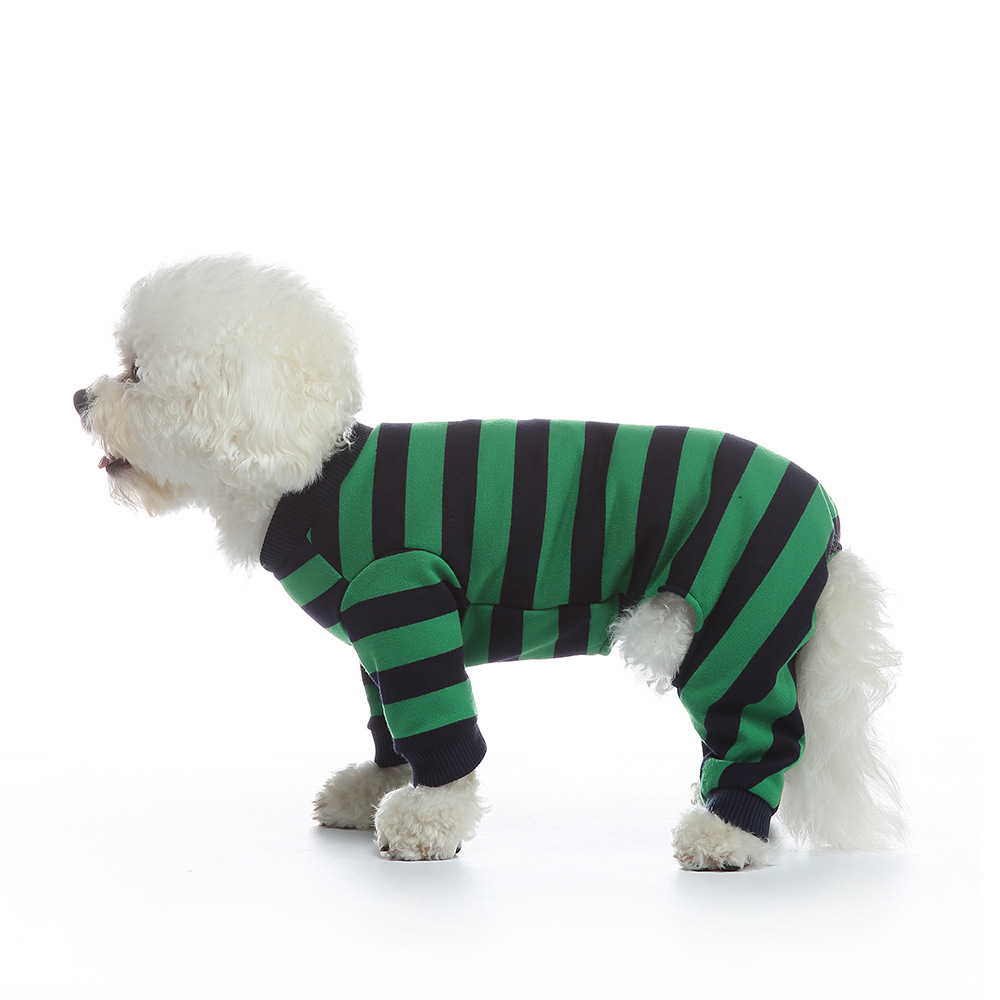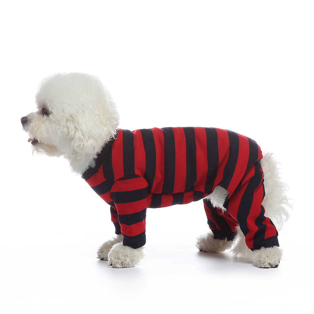 Four Seasons Classic Striped Pet Loungewear, Four Legged Onesie, Dog Pajamas Puppy, Bichon, Teddy Cotton Comfortable Dog Clothes